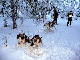 Snowmobiles were fun to drive but we decided letting someone else mush the dogsleds was a better idea. It was also a nice and relaxing experience to be able to look around while we had a little daylight and not have to worry about falling off and having the dogs continue running to their chosen destination. They love to run so they'd keep going with or without you.