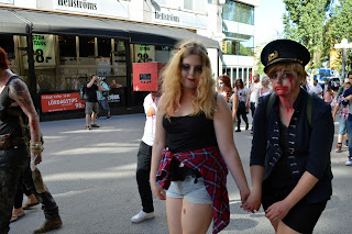 We're having a little nice weather for a few weeks so it was actually sunny and 73F. Summer appears to be unusually short this year with a bit more umbrellas and jackets needed compared to our first summer here. But I digress so here are the zombies...