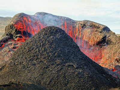 The quiet and dormant look doesn't last too long before lava bubbles and flows out of the side which meant another eruption show was about to start. Was it 10 minutes between eruptions? We lost track of time as we were mesmerized by each eruption. We didn't want to leave and didn't count how many eruptions we watched. It begins again...